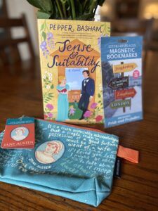 Before you go, I’m offering a prize to one commenter – some magnetic Jane Austen-inspired bookmarks, a small zip bag, and a signed copy of Sense & Suitability. All you have to do is sign up to get my e- newsletter (top right of my home page, green box) or note that you’re already a subscriber. Additional points for those who follow me as an author on Goodreads or on Instagram! (USA only)